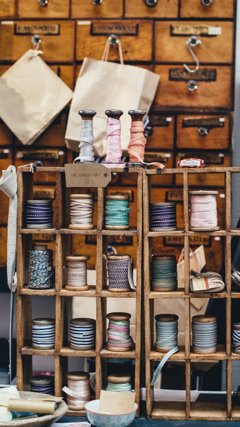 Entdecken Sie eine Vielzahl an Stoffen und Nähzubehör.